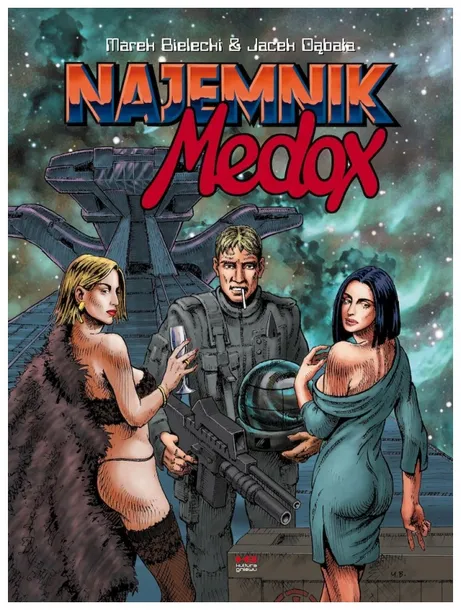 Medox to najemnik, awanturnik, a od czasu do czasu rządowy agent udaremniający przemyty na wielką skalę, porwania i zamachy stanu. Nie stroni od ryzyka, kobiet i mordobić, a ludzi którym nastąpił na odcisk doprawdy trudno zliczyć. Nic zatem dziwnego, że w większości zakątków galaktyki ma wrogów, którzy najchętniej zobaczyliby go nie drga więc nawet powieka, kiedy podczas wyścigu powietrznych bolidów, w którym bierze udział, ktoś próbuje go wyeliminować. Ostatecznie. Nie wie jednak, że to dopiero początek kłopotów i za chwilę zostanie wplątany w kosmiczną aferę, w której do zdobycia jest niewyobrażalne bogactwo. A im większa fortuna do wzięcia, tym bardziej rośnie szansa na stracenie gł Medox Marka Bieleckiego i Jacka Dąbały to awanturniczo-przygodowe SF, mogące kojarzyć się ze słynnym Funky Kovalem. Akcja, pościgi, pojedynki, kosmiczne pojazdy i atrakcyjne kobiety przyszłości są tu najważniejsze. Komiks przeleżał na dnie szuflady autorów 30 lat! Wyciągnięty, poddany remasteringowi i redakcji trafia teraz do rąk czytelników, uzupełniając tym samym kawałek historii współczesnego polskiego komiksu.