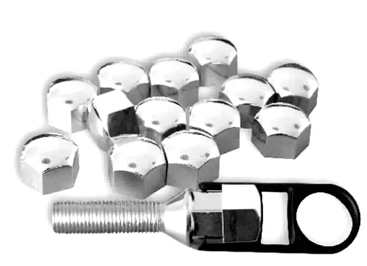 NAKŁADKI NASADKI NA ŚRUBY DO FELG CHROM 17MM KLUCZ