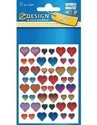 Naklejki na folii w 3D w kształcie kolorowych mieniących się serduszek.