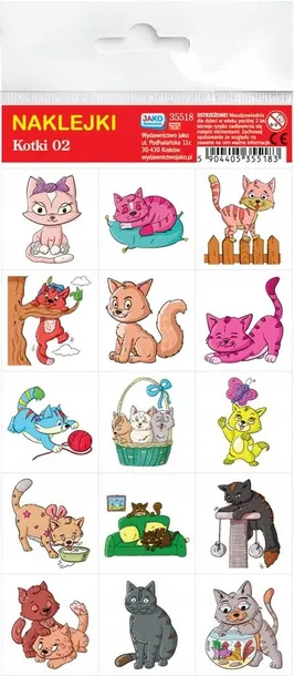 Zestaw 15 naklejek samoprzylepnych z kotkami idealnie nadaje się do wykorzystania przy wszelkich pracach kreatywnych. Naklejkami można ozdobić kartki okolicznościowe, prezenty, notesy, zeszyty i pudełka. Sprawdzą się również jako nagrody motywacyjne.