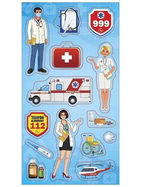 Zestaw naklejek do ozdoby zeszytów, albumów, listów, pocztówek ...14 naklejek związanych z pracą lekarza. POLECANE DO SZKÓŁ