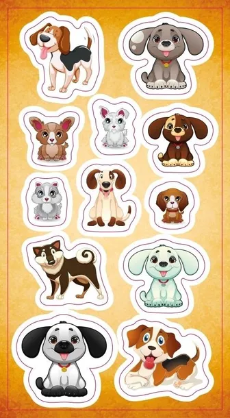 Zestaw naklejek do ozdoby zeszytów, albumów, listów, pocztówek ... 12 wesołych psiaków.