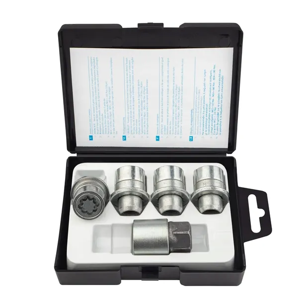 Zestaw zawiera klucz (przejściówka pomiędzy śrubą zabezpieczającą a zwykłym kluczem), który wytrzymuje moment obrotowy do 400 N/m, co czterokrotnie więcej od momentu obrotowego dokręcenia śrub do kół (80-120 N/m). W przypadku zgubienia, istnieje możliwość zamówienia nowego klucza specjalnie do twojego wzoru rowków.