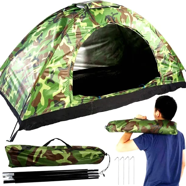 Bardzo łatwy w montażu około 5 min. Stelaż wykonany z włókna szklanego, zamykany na dwustronny suwak. Namiot po złożeniu ma bardzo małe wymiary, a dzięki pokrowcowi jest bardzo łatwy w transporcie.
