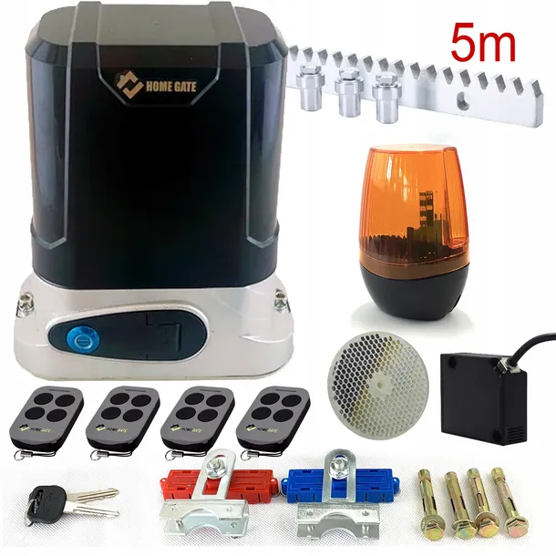 NAPĘD DO BRAMY PRZESUWNEJ 800KG, IR REFLEX, LAMPA LED, SZYNA 5M, 4 PILOTY