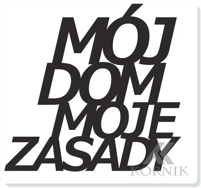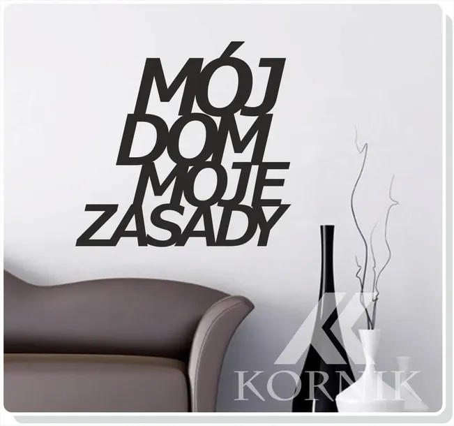 Napis dekoracyjny „Dom Zasad” to wyrazista i nowoczesna dekoracja ścienna, która w prosty sposób podkreśla charakter wnętrza oraz osobowość domowników. Hasło „Mój dom moje zasady” stanowi mocny, ale elegancki akcent aranżacyjny, nadając przestrzeni indywidualny styl i poczucie niezależności.
