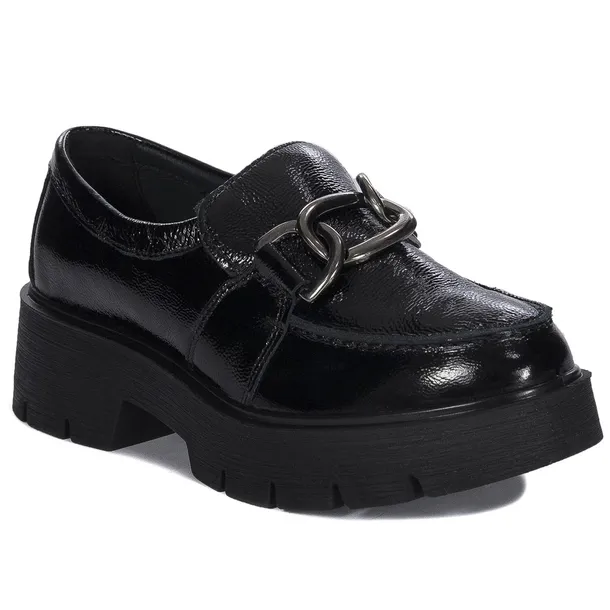 Marka Igi&Co znana jest z dbałości o jakość swoich produktów, wykorzystując nowoczesne, trwałe materiały oraz innowacyjne technologie. Obuwie tej marki zdobyło popularność nie tylko w Europie, ale również na całym świecie, stając się jedną z czołowych marek obuwniczych. Przedstawiamy kolejny model półbutów typu mokasyny marki Igi&Co. Cholewka wykonana jest z naturalnej skóry lakierowanej w eleganckim czarnym kolorze, a wygodna platformowa podeszwa z wysokogatunkowego tworzywa doskonale izoluje stopy od chłodu i wilgoci. Wnętrze buta jest wyściełane miękką, przyjemną w dotyku tkaniną i skórą naturalną, a wkładka zrobiona jest z naturalnej skóry. Model wsuwany z okrągłym, lekko migdałowym noskiem. Jeśli szukasz stylowego i funkcjonalnego uzupełnienia swojej kolekcji, ten model z pewnością Cię usatysfakcjonuje.