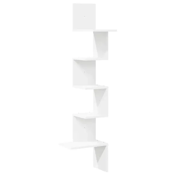 Narożna półka ścienna, biała, 32x32x127,5 cm