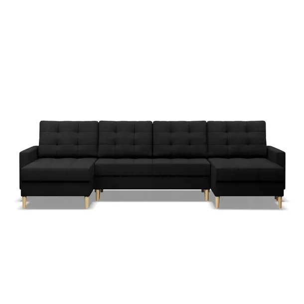 Wykonany z wysokiej jakości tkaniny w głębokim, czarnym odcieniu, narożnik wyróżnia się nowoczesnym designem oraz starannością wykonania. Wnętrze mebla wypełnione jest sprężynami bonellowymi, które gwarantują optymalne podparcie ciała oraz długotrwały komfort siedzenia. Dzięki temu ELMA ULL staje się nie tylko estetycznym elementem aranżacji, ale również meblem, który sprosta wymaganiom codziennego użytkowania.