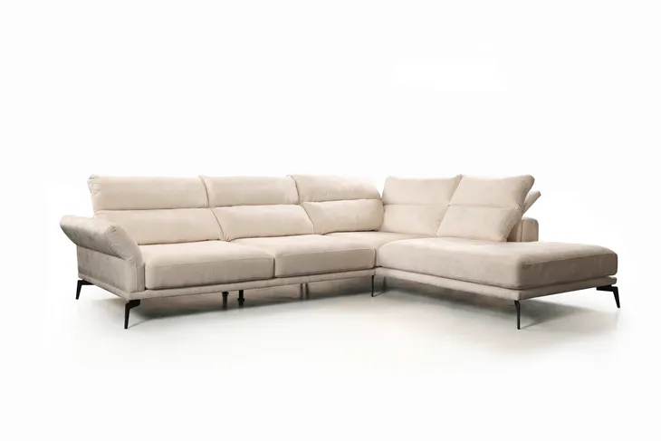 ✔ Wysokie nóżki – nadają narożnikowi lekkości i nowoczesnego wyglądu. Ułatwiają też utrzymanie czystości pod meblem, co jest dużym praktycznym plusem na co dzień.