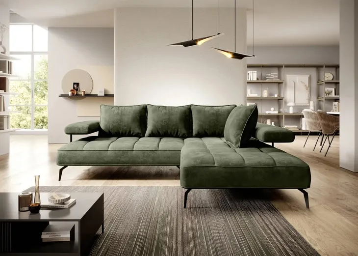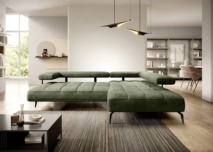 Nalik to nowoczesny i stylowy narożnik, idealny dla osób ceniących wygodę i nowoczesność. Jego eleganckie przeszycia dodają mu wdzięku, a zagłówki umieszczone na metalowych uchwytach nadają mu wyjątkowego wyglądu. Jednak to nie tylko wygląd czyni Nalik tak atrakcyjnym meblem. Jest wyposażony w elektryczną funkcję relaksu, która zapewnia niesamowity komfort i pozwala na znalezienie idealnej pozycji do relaksu. Zgrabny design, funkcjonalność i wygoda sprawiają, że narożnik Nalik będzie doskonałym wyborem dla tych, którzy pragną połączenia estetyki z doskonałym komfortem w swoim salonie.