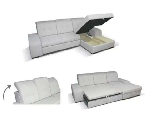 Idealna propozycja dla osób ceniących sobie wygodę oraz funkcjonalność mebli. Solidnie wykonany narożnik z nowoczesnym smakiem. Świetna propozycja do wyposażenia domowego salonu. Narożnik rozkładany z funkcją spania oraz pojemnikiem na pościel.