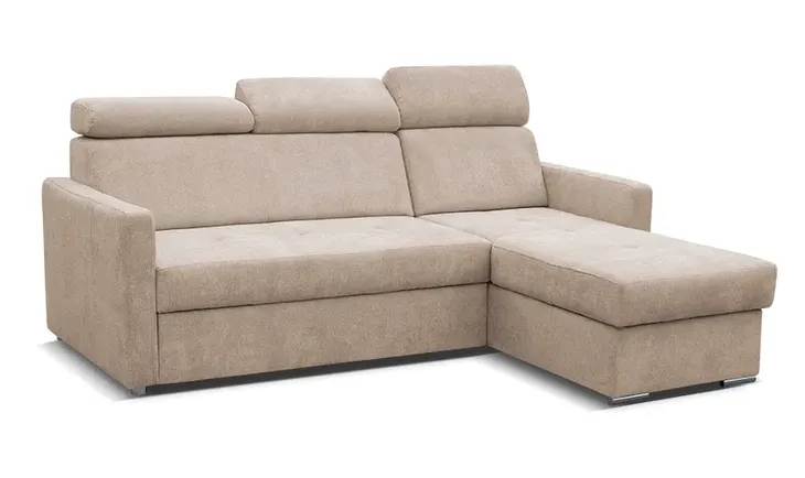 Narożnik tapicerowany Kevin to nowoczesna i modna aktualnie propozycja wyposażenia salonu. Regulowane zagłówki są funkcjonalne i nadają nowoczesnego wyglądu. Narożnik wykonany został z najlepszych materiałów i dzięki dużej ilości tkanin do wyboru pozwala dopasować go kolorystycznie do każdego wnętrza. Różne typy przyjemnych w dotyku tkanin zadowolą nawet najbardziej wybredne gusta a ich plamoodporność pomoże w zachowaniu czystości i higieny użytkowania narożnika przez lata.
