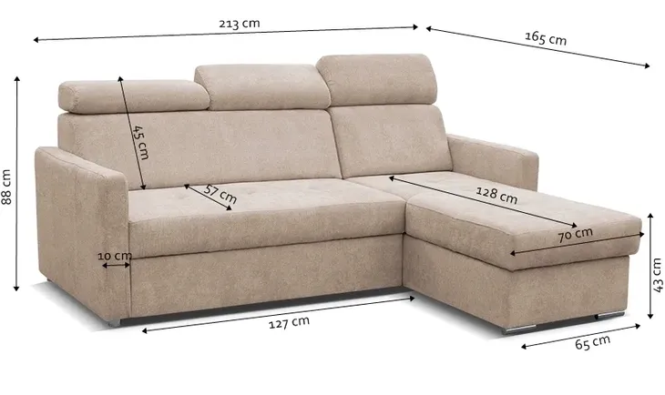 - funkcja spania, podłokietniki, pojemnik na pościel, regulowane zagłówki