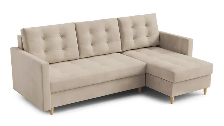 Narożnik rozkładany Paris to znakomity wybór do mniejszego salonu, pokoju gościnnego czy pokoju młodzieżowego, w których pomoże wyczarować kącik wypoczynkowy z prawdziwego zdarzenia. Minimalistyczną, kompaktową bryłę mebla osadzono tutaj na smukłych drewnianych nóżkach, co pozwoliło uzyskać zachwycający lekkością efekt. Dzięki temu konstrukcja nie zdominuje swojego otoczenia, zamiast tego dodając mu uroku.