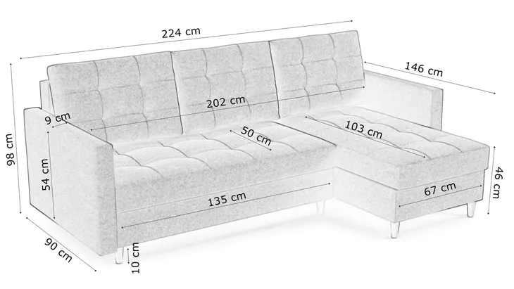 - funkcja spania, luźne poduszki, podłokietniki, pojemnik na pościel