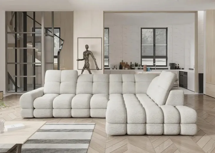 Narożnik Tola L to znakomita propozycja dla miłośników nowoczesnego designu. Ten wyjątkowy mebel został zaprojektowany zgodnie z najnowszymi trendami, co znajduje odzwierciedlenie w jego unikalnym wyglądzie i funkcjonalności. Wygodne, masywne siedzisko jest podkreślone głębokimi przeszyciami. Regulowane zagłówki i przesuwane oparcia zapewniają komfort na najwyższym poziomie. Funkcjonalność narożnika jest dodatkowo podkreślona przez zastosowanie elektrycznie wysuwanego siedziska. To praktyczne rozwiązanie sprawia, że jest idealnym wyborem dla tych, którzy cenią sobie nie tylko styl, ale również funkcjonalność.