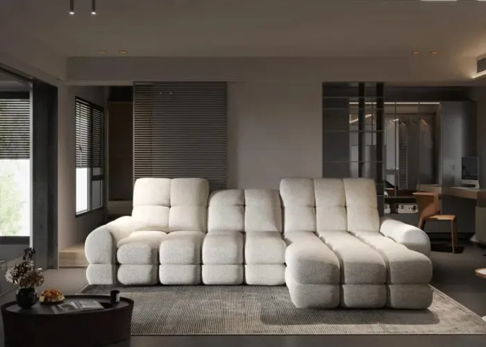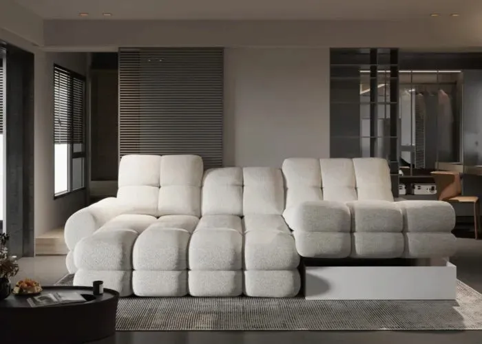 Narożnik Tola Mini to połączenie nowoczesnego designu, wygody i funkcjonalności. Masywne siedzisko z głębokimi przeszyciami dodaje mu oryginalnego wyglądu, podkreślając elegancję. Regulowane zagłówki i przesuwane oparcie pozwalają na indywidualne dostosowanie pozycji siedzenia, zapewniając maksymalny komfort. Dodatkowo, elektrycznie wysuwane siedzisko daje możliwość wygodnej powierzchni do wypoczynku. W otomanie znajduje się ukryty pojemnik, idealny na przechowywanie poduszek i koca. To mebel, który ożywi każde wnętrze i zapewni relaks na najwyższym poziomie.