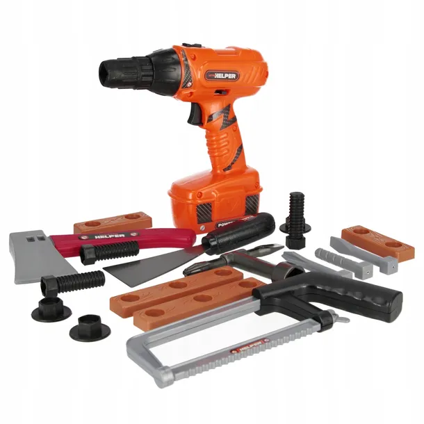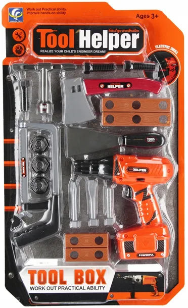 Zalety produktu: Rozwijanie wyobraźni, nauka używania narzędzi warsztatowych, rozwijanie zdolności manualnych, rozwijanie w dziecku pasji. Zestaw Narzędzi MEGA CREATIVE zainteresuje każdego fana majsterkowania. Dzięki tym narzędziom dzieci będą mogły zająć się różnymi konstrukcjami. Może w przyszłości będą naprawdę mistrzami w tym fachu? Zawartość zestawu: wiertarka 3 nakładki, piła ręczna, 3x śrubki 3x nakładka, 2x deseczka mała, 2x deseczka duża, klucz, szpachelka, toporek. Wiertarka posiada ruchome wiertło, po włączeniu odpowiedniego przycisku wiertło obraca się w prawą bądź w lewą stronę. Wszystkie elementy wykonane z plastiku. Wymiary/waga/baterie: wymiar opakowania dł. x wys. x gł. cm : 32x54x6, waga produktu w opakowaniu kg : 0,72 kg, wymiar produktu d. x wys. x szer. cm -wiertarka 17x18x5, waga produktu kg. 0,61 kg. Wymaga zasilania bateriami-wiertarka 2x AALR06 nie załączonymi do zestawu. Zestaw przeznaczony dla dzieci w wieku: 3 . Pakowany na blistrze. Pakowanie w kartonie po 18/36 szt.