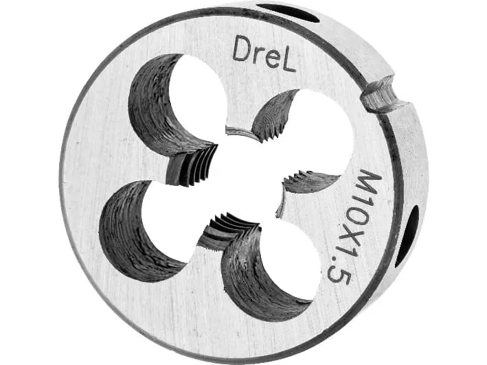 Narzędzie wieloostrzowe służące do nacinania gwintów zewnętrznych. Narzynka wykonana ze stali szybkotnącej HSS