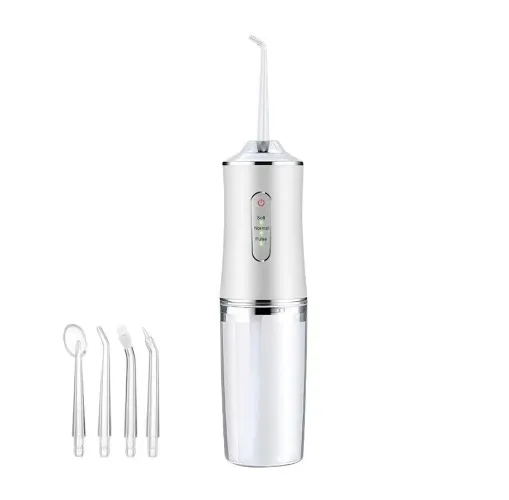 ND41_dS_63533 Irygator do zebow Opis produktu:Irygator do jamy ustnej - bezprzewodowy, z zestawem 5 końcówekNowoczesny i kompaktowy irygator wodny to urządzenie do higieny jamy ustnej, które skutecznie usuwa resztki jedzenia oraz bakterie z trudno dostępnych miejsc między zębami i poniżej linii dziąseł. Stanowi doskonałe uzupełnienie codziennej pielęgnacji obok szczoteczki elektrycznej i nici dentystycznej.Wyposażony w zbiornik na wodę o dużej pojemności i wygodne przyciski sterujące, irygator oferuje kilka trybów pracy (normalny, delikatny, pulsacyjny) dopasowanych do indywidualnych potrzeb użytkownika.Zestaw zawiera: