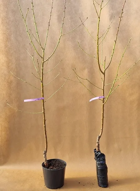 Drzewka owocowe doskonale zabezpieczone do wysyłki, system korzeniowy pakowany w balot z torfem.