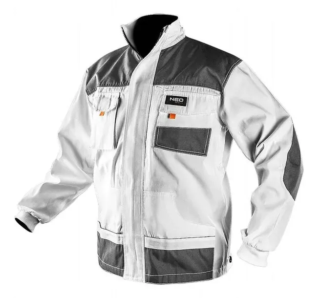Bluza robocza biała, HD, rozmiar LD/54 Biała bluza robocza NEO to niezwykle praktyczne rozwiązanie podczas wszystkich prac, zarówno profesjonalnych, jak i domowych. Wykonana z wysokiej jakości materiału wzmocnionego na łokciach. Podwójnie przeszyte szwy, zwiększające trwałość oraz elementy odblaskowe, zapewniające widoczność użytkownika. Solidne kieszenie wytrzymują duże obciążenie i przechowają wszystkie niezbędne podczas pracy narzędzia. Dodatkowym atutem jest właściwie ulokowana kieszeń na smartfona, dzięki której telefon można mieć zawsze przy sobie, nie martwiąc się o jego bezpieczeństwo. Gwarantem jakości jest certyfikat europejski oraz wykonanie zgodne z normą EN ISO 13688:2013. Marka NEO spełnia oczekiwania profesjonalistów.