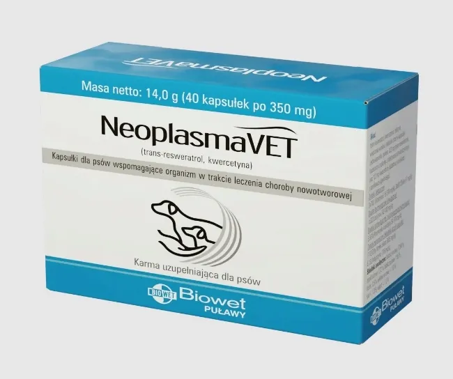 NeoplasmaVET uzupełnia dietę psa w składniki wzmacniające organizm i poprawiające komfort życia chorych zwierząt. Rdestowiec ostrokończysty zawiera trans-resweratrol naturalny polifenol, który wspiera organizm w ochronie komórek przed czynnikami działającymi rakotwórczo. Wpływa korzystnie na funkcjonowanie układu krwionośnego, poprzez usprawnianie jego mikrocyrkulacji. Perełkowiec japoński zawiera kwercetynę naturalny flawonoid o działaniu silnie przeciwutleniającym wspomagającym właściwości obronne komórek organizmu przed szkodliwym działaniem wolnych rodników tlenowych. Selen jest składnikiem białek enzymatycznych chroniącym komórki przed stresem oksydacyjnym. Witamina E i selen wzmacniają naturalną odporność poprzez wspomaganie aktywności limfocytów T biorących udział w procesie immunologicznym organizmu.