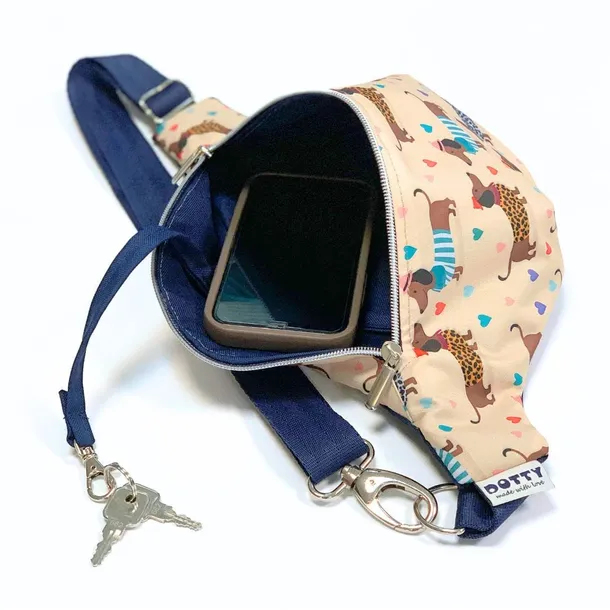 ✅ granatowy z beżową kieszenią w jamniki