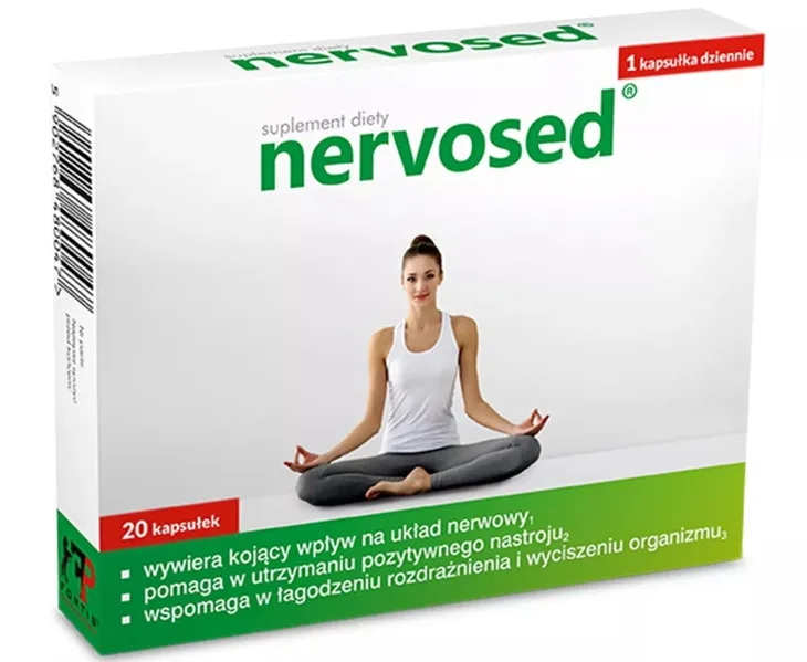 Suplement diety Nervosed to złożony preparat antystresowy nie wywołujący efektu senności czy otępienia w ciągu dnia. Preparat zawiera odpowiednio dobrane wyciągi roślinne z melisy, chmielu oraz różeńca górskiego wzbogacone dodatkowo magnezem i witaminą B6. Wyciąg z melisy zawarty w preparacie pomaga utrzymać pozytywny nastrój, a także przyczynia się do optymalnego odprężenia psychicznego i fizycznego. Wyciąg z chmielu wywiera kojący wpływ na układ nerwowy. Wyciąg z różeńca górskiego pomaga organizmowi przystosować się do stresu oraz wysiłku fizycznego, ma korzystny wpływ na zmęczenie wywołane stresem. Magnez przyczynia się do zmniejszenia uczucia zmęczenia i znużenia. Witamina B6 korzystnie wpływa na pracę umysłową.