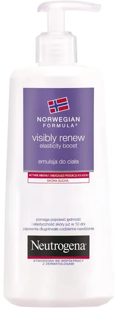 Innowacyjna emulsja do ciała do codziennego stosowania zapewnia długotrwałe nawilżenie i pomaga przywrócić skórze elastyczność, dając efekt, który widzisz i czujesz. Zawiera intensywne nawilżającą Formułę Norweską i aktywne minerały, które pomagają zwiększyć produkcję kolagenu w skórze*. Nietłusta konsystencja szybko się wchłania.