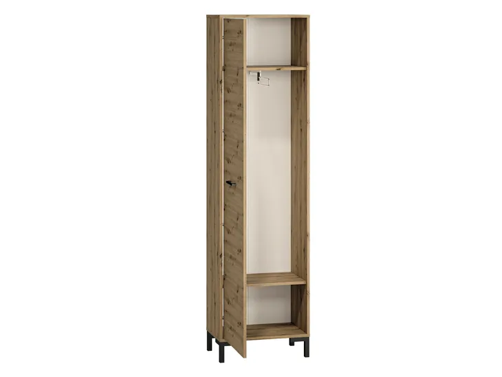 Wewnątrz szafy dwie półki oraz wysuwany drążek Kolorystyka systemu: