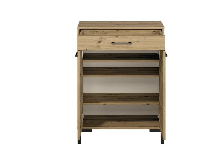 Komoda posiada jedną szufladę oraz dwie klapy.