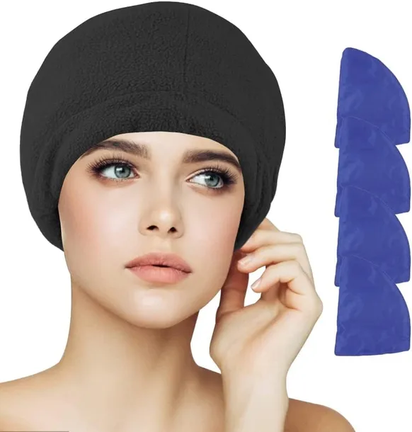 Skuteczna ulga na migrenę – wolne ręce do łagodzenia migreny, przewlekłej, sztywności mięśni, napięcia głowy, stresu itp. Hot & Cold Compress – przechowuj opakowanie lodu w lodówce lub podgrzej je w kuchence mikrofalowej, nałóż w odpowiedniej temperaturze, zapewniając idealną, wygodną nutę na głowie. Elastyczny pasek – nakładka na lód jest wzbogacona elastycznym paskiem, który idealnie nadaje się dla mężczyzn i kobiet. Trzymaj opakowanie na lód w celu skutecznego łagodzenia bólu głowy, pasuje do różnych rozmiarów głowy. 1 czapka i 4 opakowania lodowe – zawiera 1 wygodną czapkę i 4 miękkie żelowe opakowania lodów, że każda część głowy może być zapakowana w opakowanie żelowe.