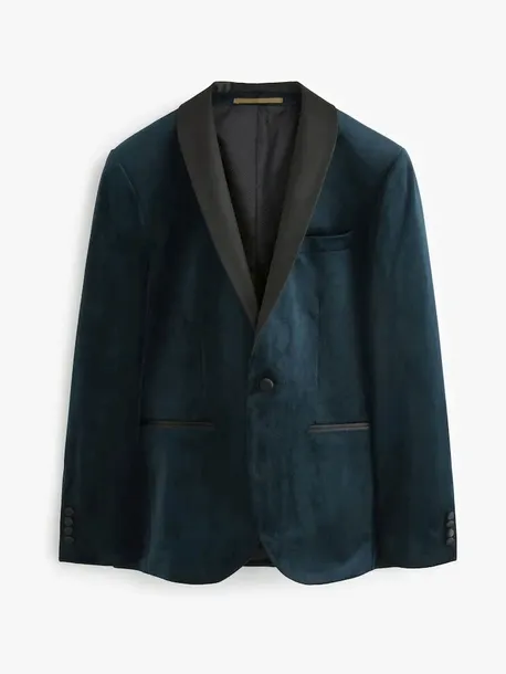 Dodaj odrobinę luksusu do swojej formalnej garderoby z naszą ciemnogranatową aksamitną marynarką. Ten wyjątkowy element garderoby ma idealnie dopasowany krój i satynowy kołnierz z klapami, kieszeń na piersi z wpustem, kieszenie z przodu wykończone satynową tasiemką oraz zapięcie na jeden guzik. Formalna i funkcjonalna, wykończona ozdobną, drukowaną podszewką, gwarantuje, że Twój elegancki strój zrobi wrażenie.