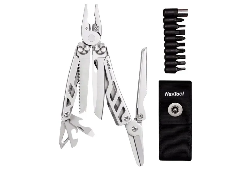 Wielofunkcyjne narzędzie Flagship Max zostało udoskonalone na bazie modelu Flagship Pro, aby sprostać wymaganiom konsumentów. Do narzędzia wielofunkcyjnego dołączono 14 małych akcesoriów, w tym szczypce długie, szczypce zwykłe, przecinaki do drutu miękkiego i twardego (YG8), standardowe przecinaki do drutu, scyzoryk, piłę do drewna, nożyczki, śrubokręt krzyżakowy, śrubokręt płaski, otwieracz do butelek, pilnik do metalu, wybijak do szyb i linijkę. Idealne do zajęć na świeżym powietrzu, na kemping, do prac domowych, codziennych majsterkowań i nie tylko.