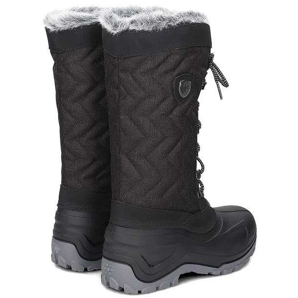 Projekt tego obuwia zimowego ma miejski wygląd. Klasyczne „kanadyjskie” buty après-ski o miejskim stylu dla kobiet. Na zewnątrz wersja zawiera gumę termoplastyczną szeroko stosowaną w tego typu obuwiu, a cholewka jest z poliestru dzięki czemu jest łatwa w czyszczeniu. Zapięcie jest tradycyjne ze sznurowadłami biegnącymi wzdłuż kostki. Wewnątrz tych zimowych butów damskich zawierają syntetyczne włosy, które sprzyjają ogrzewaniu ciała i pomagają zwalczać niskie temperatury.