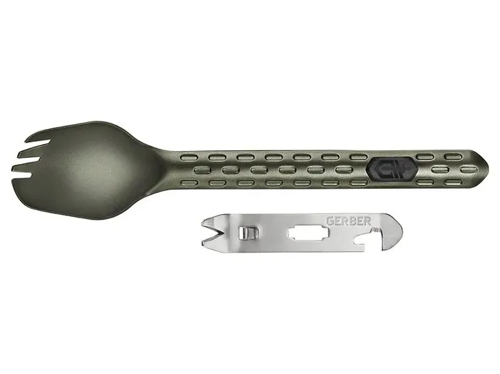 Multitool Gerber Devour Spork flat Sage - lekki i kompaktowy zestaw niezbędny przy każdej wyprawie lub na biwaku, dzięki 9 funkcjom Devour Multi-Fork jest jedynym narzędziem potrzebnym do gotowania, jedzenia i czyszczenia.