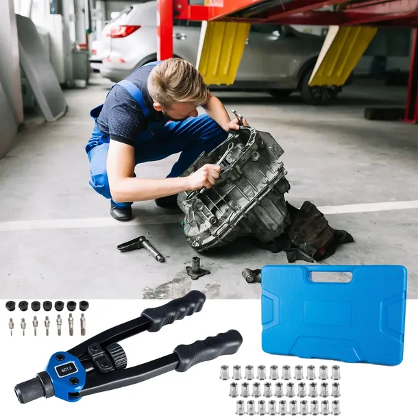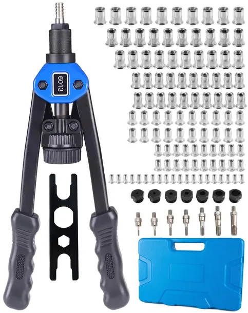 Ręczna nitownica do nitonakrętek + zestaw nitonakrętek oraz głowic. Urządzenie wykonane z materiałów najwyższej jakości zapewnia długotrwałe bezproblemowe działanie w warunkach domowych oraz profesjonalnych.