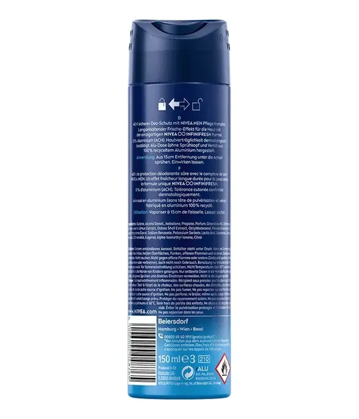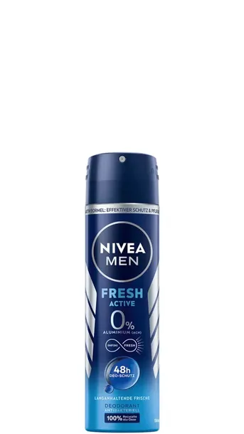 Dezodorant w sprayu MEN Fresh Active marki NIVEA zapewnia 48-godzinną ochronę i odświeża dzięki cennym ekstraktom morskim. Dla naturalnej, długotrwałej świeżości.