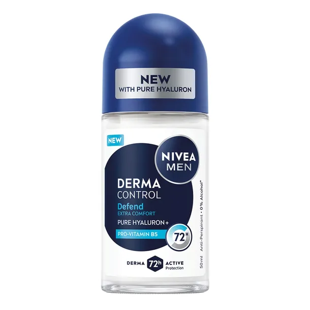 Antyperspirant NIVEA MEN Derma Control Defend w kulce zapewnia dodatkowe uczucie komfortu z niezawodną 72-godzinną ochroną antyperspiracyjną. Zaawansowana formuła z czystym kwasem hialuronowym i prowitaminą B5 wzmacnia skórę i pomaga chronić ją przed swędzeniem, jednocześnie ją odżywiając. Tolerancja dla skóry potwierdzona dermatologicznie. Formuła nie zawiera alkoholu etylowego. Antyperspirant oferuje DERMA 72H ACTIVE PROTECTION- współpracuje ze skórą, zapewniając niezawodną i wysoce skuteczną walkę z potem i nieprzyjemnym zapachem, przy jednoczesnej pielęgnacji skóry pod pachami.