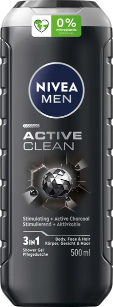 NIVEA MEN ACTIVE CLEAN OCZYSZCZAJĄCY ŻEL POD PRYSZNIC dla mężczyzn 3w1 500 ML