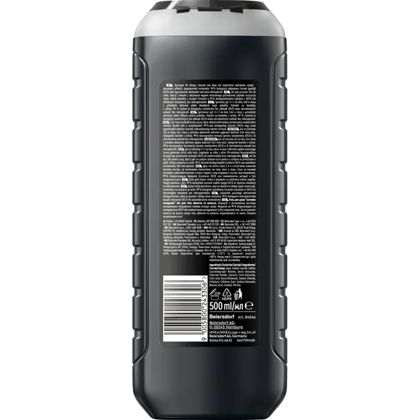 NIVEA żel pod prysznic toprodukt 3w1 jest przeznaczony do mycia ciała, twarzy i włosów, zapewniając Ci kompleksową pielęgnację. Jego innowacyjna formuła została wzbogacona o węgiel naturalnego pochodzenia, który słynie z silnych właściwości wiążących – na zanieczyszczenia działa jak magnes. Dzięki temu męski żel pod prysznic głęboko oczyszcza skórę i włosy oraz zapewnia im długotrwałe odświeżenie. Żel pod prysznic ma męski zapach i dzięki łagodnej formule, jest odpowiedni do codziennej pielęgnacji. Tolerancja dla skóry potwierdzona dermatologicznie. W trosce o planetę, formuła nie zawiera mikroplastików* oraz jest biodegradowalna w 99%**(zgodnie z OECD lub zbliżonymi metodami).