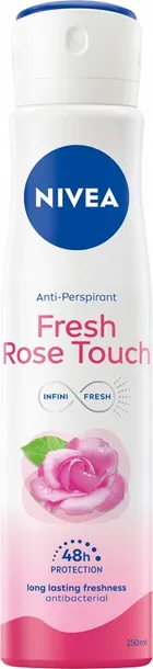 Odkryj długotrwałą świeżość i wyeliminuj nieprzyjemny zapach dzięki antyperspirantowi NIVEA FRESH ROSE TOUCH, który szybko się wchłania, zapewniając jednocześnie niezawodną 48-godzinną ochronę. Sekret tkwi w unikalnej formule NIVEA INFINIFRESH.