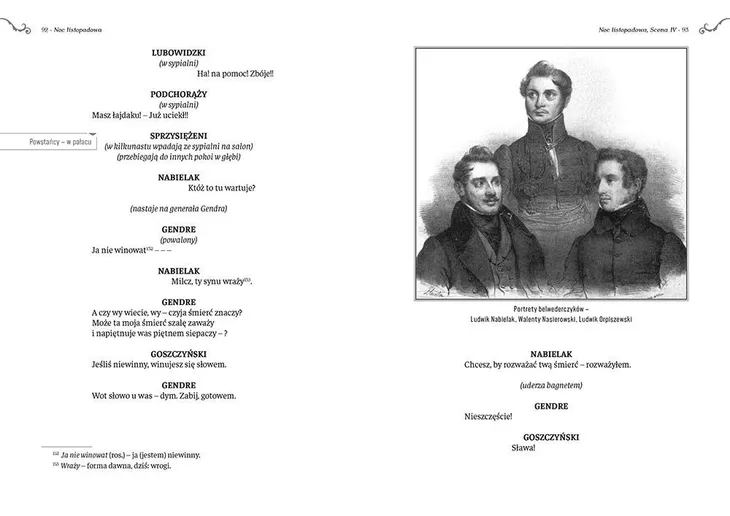 W przedziwnym kręgu wydarzeń splatają się tutaj dwie płaszczyzny - realna, historyczna, na której jest rok 1830 i właśnie wybucha powstanie listopadowe, oraz mitologiczna, na której bogowie znani z mitologii greckiej wpływają na los powstania i decydują o przyszłości osób biorących w nim udział, zarówno po jednej, jak i po drugiej stronie.