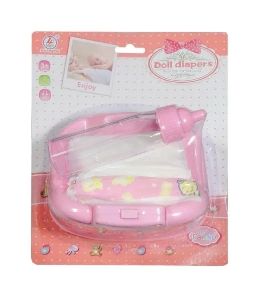 Zestaw nocnik wraz z akcesoriami do zabawy. W zestawie nocnik, pieluszka oraz butelka. Zabawka działa na baterie typu AG13. Baterie znajdują się w zabawce. Produkt zapakowany w kartonową podstawkę z przezroczystym kloszem. Zabawka dla dzieci od 3 lat.
