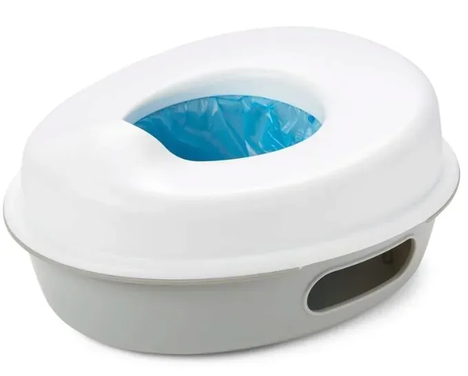 Doskonale sprawdzi się w podróży, jako wolnostojący nocnik w domu bądź jako nakładka na toaletę, która pasuje do większości desek sedesowych.