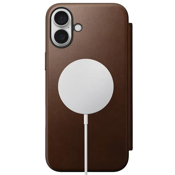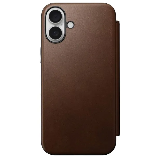 NOMAD MODERN LEATHER FOLIO, BROWN - IPHONE 16 PLUS