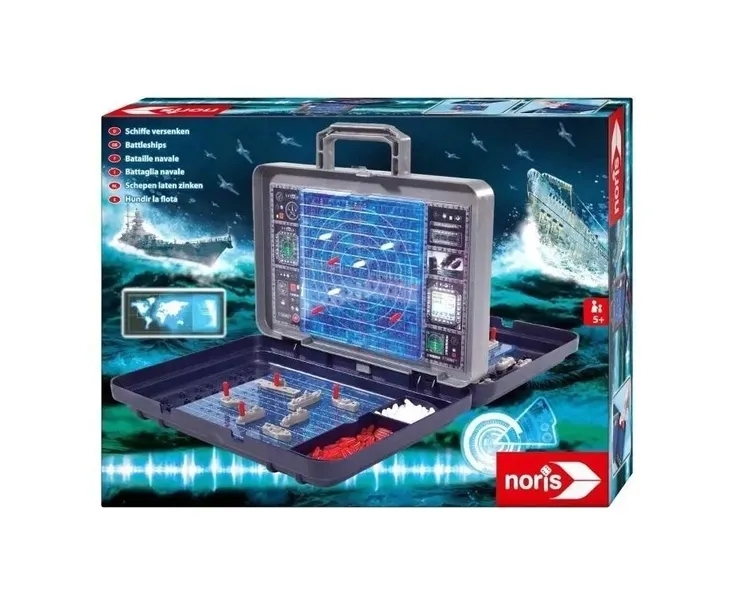 Gra w okręty statki w walizce Została stworzona przez cenioną firmę Noris, która od lat projektuje gry dla dzieci, dbając o szczegóły i ich wysoką jakość. Gra w okręty to znana gra z tradycjami. Polega na strategicznym ustawieniu swoich jednostek na wodzie i zniszczeniu wszystkich okrętów przeciwnika. Gra jest w formie walizki, dzięki czemu jest bardzo wygodna w przenoszeniu i w podróży. Dwie części walizeczki dzieli pionowa ścianka przypominająca radar, na której zaznacza się trafione i zatopione okręty. Ścianka uniemożliwia graczom podglądanie ułożenia jednostek przeciwnika. W walizce znajdują się również przegródki na pionki. Zabawka przeniesie dzieci w ekscytującą wojnę morską i zapewni wiele godzin wspaniałej zabawy.