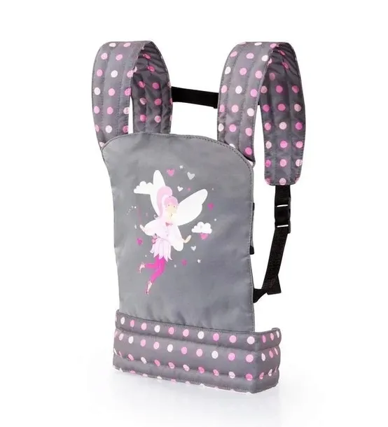 Te nowoczesne nosidełko jest idealne dla pluszowych zabawek lub lalek do 46 cm. Lalkę można nosić zarówno z przodu, jak i z tylu. Dzięki miękkim, szerokim pasom naramiennym oraz szerokiemu pasowi biodrowemu, który można indywidualnie regulować, ukochanego maluszka można nosić długo i wygodnie. Zintegrowane siedzisko po wewnętrznej stronie nosidełka zapewnia dodatkowe podparcie dla lalki.